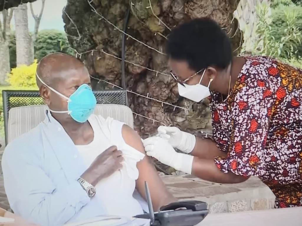 Photos circulating on social media show inept despot and senile dictator Museveni getting injected with the famous Ugandan COVIDEX, but very many people are wondering whether he will survive its effects, given his current health status.
