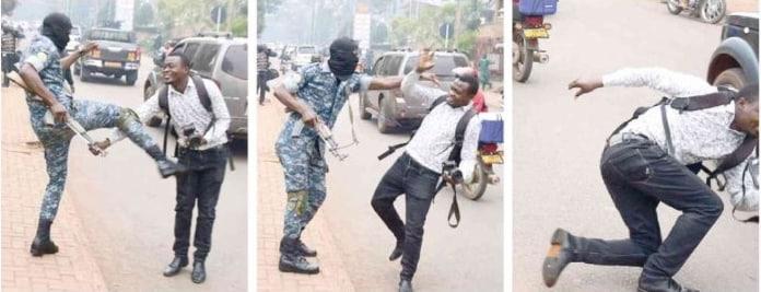 Since yesterday, social media has been awash with disturbing images and videos featuring Museveni’s hooded security men kicking a journalist, Lawrence Kittata, straight in the genitals. Kitatta’s offence was that he was covering a demonstration by torture victims at the home of Deputy Speaker Anita Among.