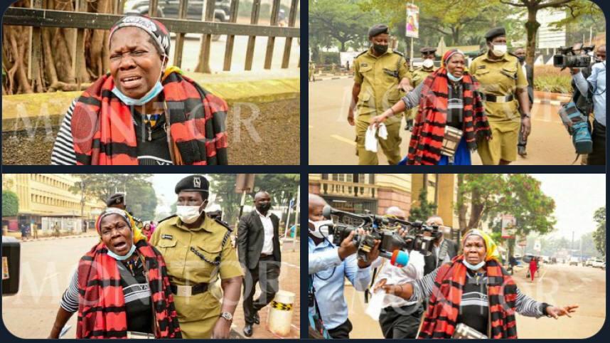 Christine Sanyu Nakajumba who is Honorable Ssegirinya’s mother was manhandled outside the parliament building by multiple armed police officers for trying to plead again with the Deputy Speaker of parliament now acting Speaker Anita Among for the release of her innocent son.