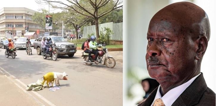 In return, the aggrieved citizenry are dumping “NRM yellow” painted piglets to show displeasure. Previously, aggrieved unemployed youth dumped a yellow pig on the parliament expressing their grief caused by ruthless Museveni who continues to care less for his people.
