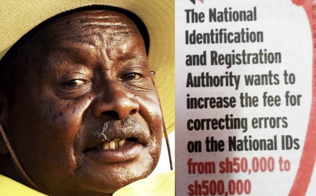 Senile Museveni is driven by his insatiable greed and will stop at nothing, even if it is the lives of his people at stake. The despot is increasing the fees for national ID cards corrections from Ugx50,000 to a whooping Ugx500,000 for errors committed by his appointed personnel. Museveni is driving Uganda from a government, to a criminal cartel.