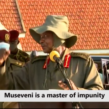 Despot Museveni through his mouthpieces is pretending that he cares about his army’s brutal behavior – that is, following viral video of one of his armed hitmen manhandling a traffic police officer on duty. The brutal hitman even shot at people’s vehicles in the middle of the road.