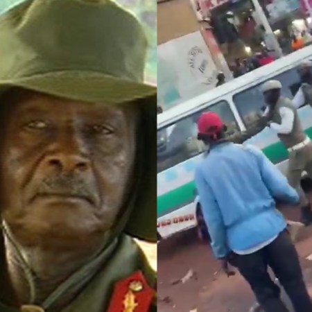 VIDEO: An armed member of Criminal Museveni’s hit squads was filmed dragging a traffic police officer by his collar in a broad daylight, as scores of long oppressed and terrorized slaves in the Matooke Republic helplessly looked on.