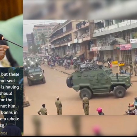 Tyrant Museveni wrecks terror on Ugandans with his APCs, military tanks motorcade